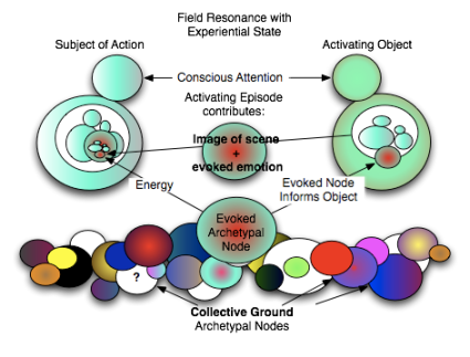 The self-other internal representation graphic components are introduced with the Action Disorder, Developmental Considerations, and Experiential State plates and the accompanying essays. The “scene remembered” composite image of the Experiential State is at the center of the system. When seen in its symbolic aspect, as a complex in a parallel reality, this generic image/affect bi-polar pair invites trying on all the layers of relationship we can imagine: inner world/outer world, self-self, self-other, ego-Self, complex nucleus, two complexes interacting, ego in relationship to archetype, self in relationship to nature, Self in Nature, the participation mystique in the moment, and more.